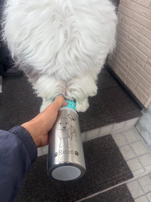 あの!給水ボトルを使っています! BLOG 2025.10.28 レオンのイラスト入り給水ボトル お散歩時に使用しております とっても使いやすいです! レオンもいつも以上に喜んでいるように感じます( *´艸`)♡