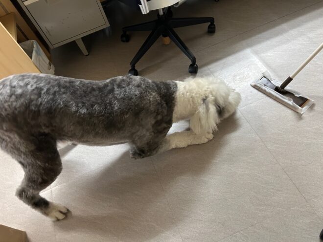 今日も元気にフローリングワイパーと戦っています( *´艸`)